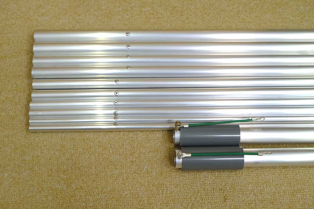 ゲインは約3.2dBi エレメントパイプは硬性の高いA6063アルミパイプを使用